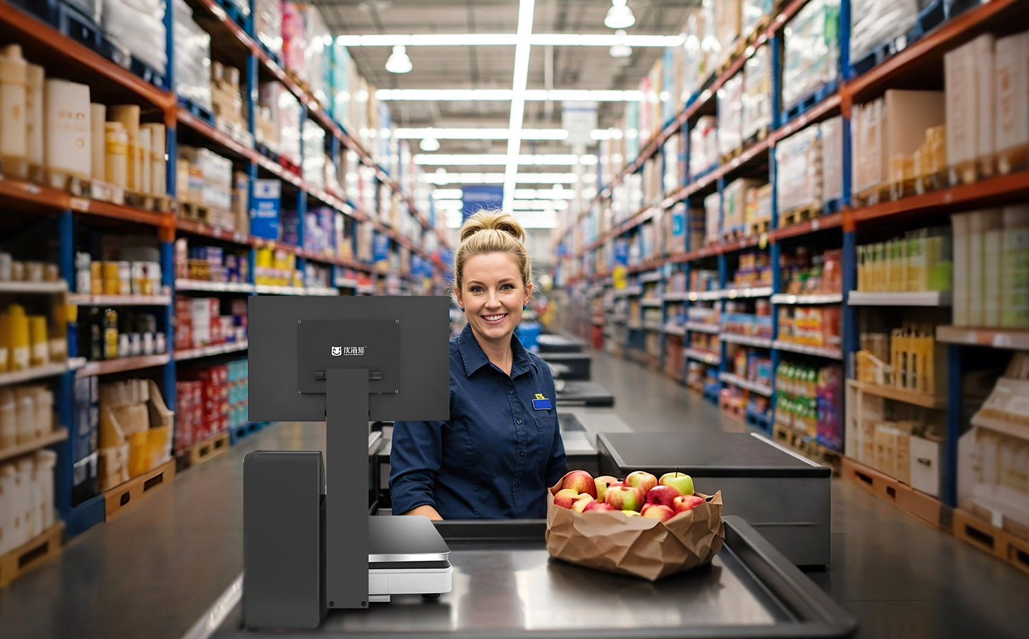 优海猫AI一体收银秤,智能称重与收银功能一体化设计,提升商超运营效率,减少人工操作误差。