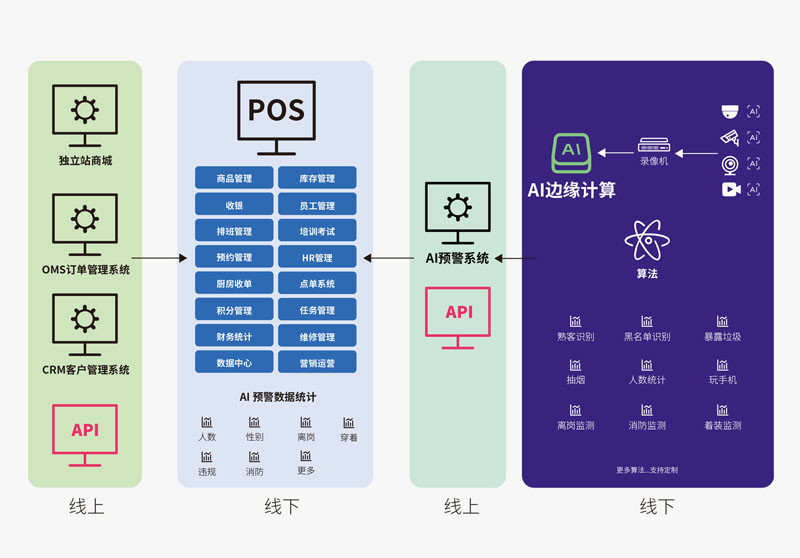 利用包括人脸识别、指纹识别、传感器、ai菜品识别等在内的ai神经网络计算,实现精准用户识别、黑名单播报、门禁开启、菜品识别称重等功能。
